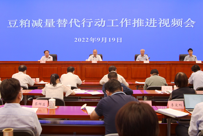 近日,农业农村部召开豆粕减量替代行动工作推进视频会,深入学习贯彻习近平总书记重要指示精神,落实党中央、国务院关于开展粮食节约行动的决策部署,全面推进豆粕减量替代行动,促进养殖业节粮降耗,保障国家粮食安全。农业农村部副部长马有祥出席会议并讲话。