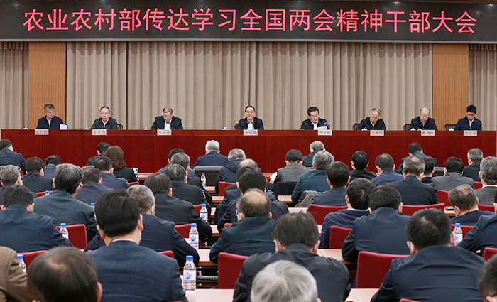 会议强调,全国两会审议批准国务院机构改革方案,中央决定优化农业农村部职责,充分体现了习近平总书记和党中央对三农工作一以贯之的高度重视。部系统各级党组织和广大党员干部要从政治和全局的高度充分认识改革的重大意义,全面准确领会中央部署安排,坚决执行中央要求,严格遵守改革纪律,精细做好机构职能划转、内设机构设置和人员安排等工作,统筹好机构改革和业务工作的关系,做到思想不乱、工作不断、有效衔接、干劲不减。